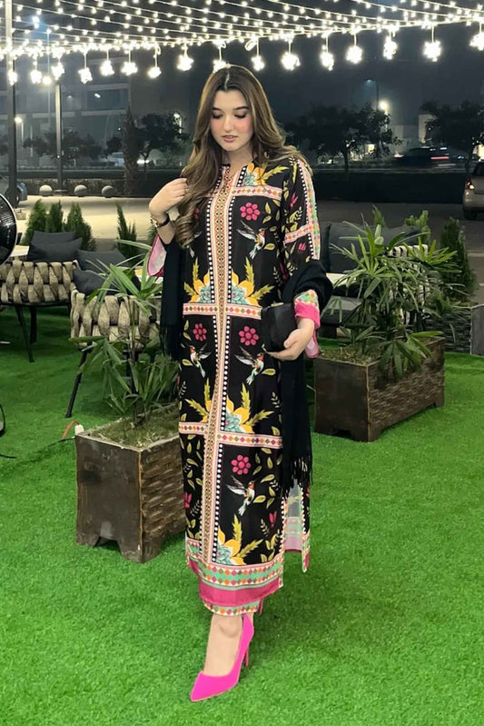 Best Selling Digital Printed Dress In Black Color 2Pcs - 826